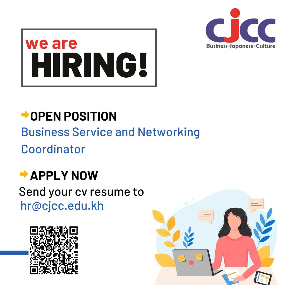 The Cambodia-Japan Cooperation Center (CJCC) is now seeking qualified candidates to fill the position of Business Service and Networking Coordinator as in the following.