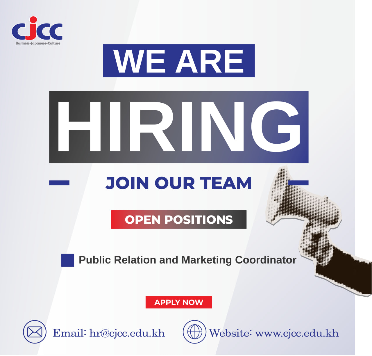 The Cambodia-Japan Cooperation Center (CJCC) is now seeking qualified candidates to fill a position of Public Relation and Marketing Coordinator as in the following.