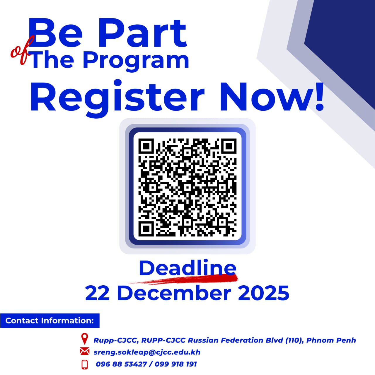 - Email: sreng.sokleap@cjcc.edu.kh